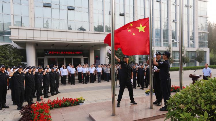 10月1日,日照保安發展集團在集團院內隆重舉行“升國旗、唱國歌...